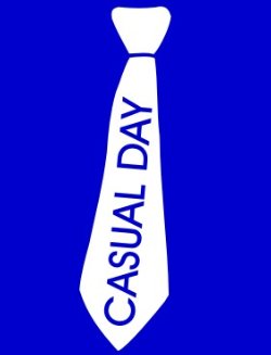 It's CASUAL DAY! If you haven't yet paid your $20 fee to participate in Casual Days, please do so now. (The collected funds go to charitable organizations.)